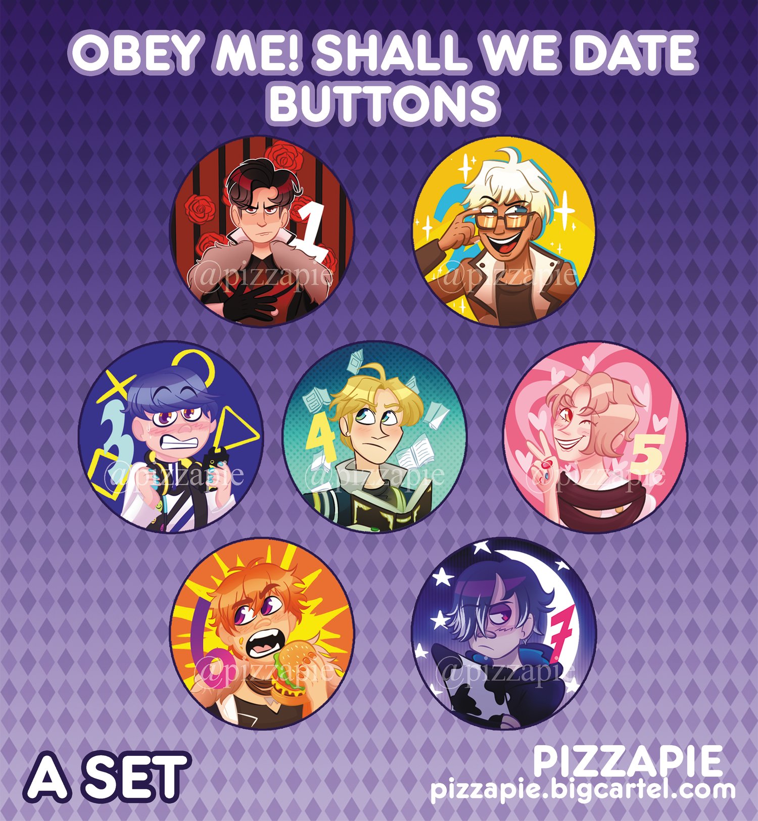 A Set: 7-button pack includes all seven brothers (Lucifer, Mammon, Leviathan, Satan, Asmodeus, Beelzebub, and Belphegor)